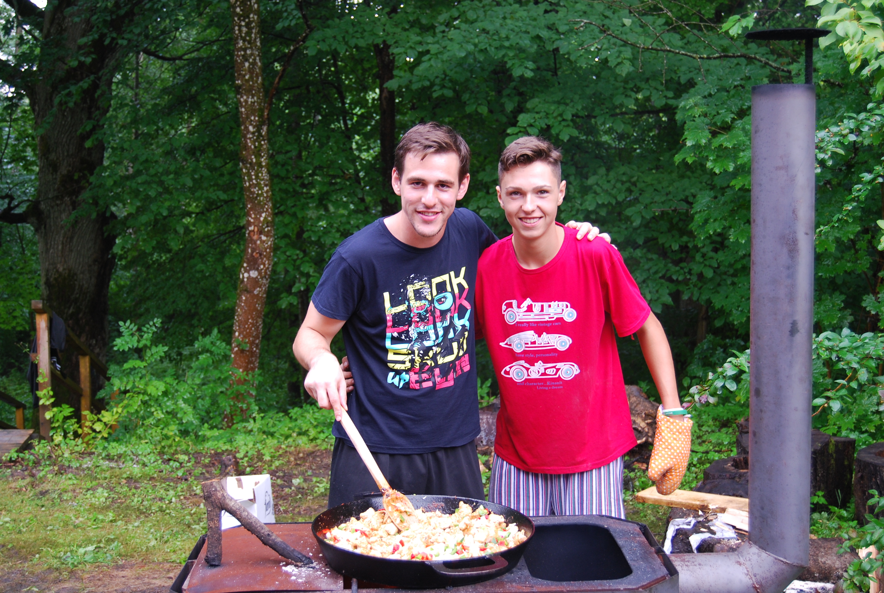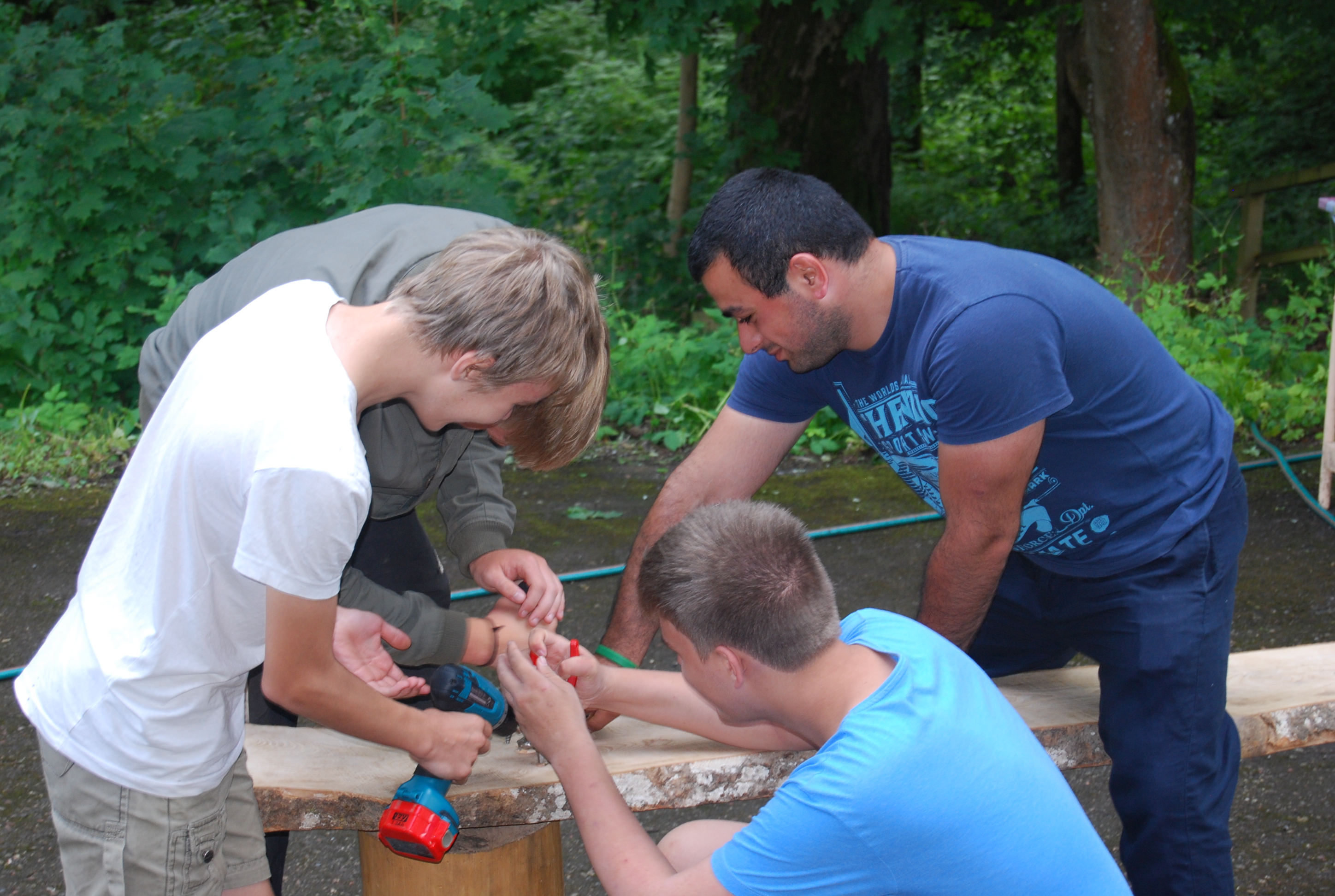 Beide Gruppen haben sich nach der halben Strecke getroffen, und die Jungs haben Holz gesammelt und das Feuer vorbereitet. Aida war sehr klug, und hat ganz alleine ein Dreibein gebaut, mit dem wir den Topf über das Feuer hängen konnten. Nach dem Abendessen sind wir weitergewandert, aber als es kalt wurde, wollten alle so schnell wie möglich zurück nach Hause.