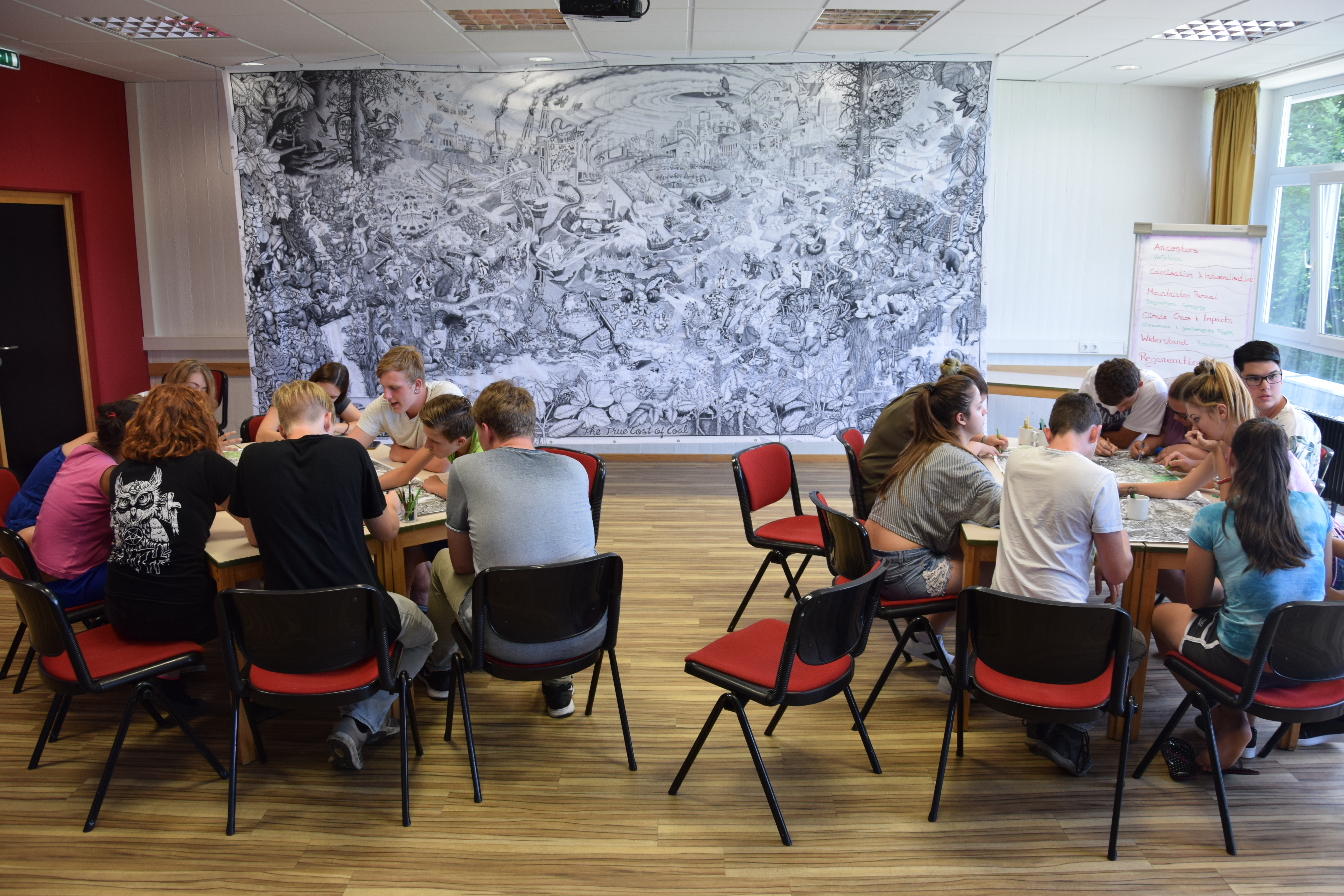 Am Freitag morgen hat die Gruppe gegraben und so, Schritt für Schritt, den Weg des Pfades festgelegt. Am Nachmittag gab es einen Workshop über die Verwendung von Kohle, um den Jugendlichen die Probleme und Resultate des übermässigen Kohle-Konsums klarzumachen. Dieser Workshop wird uns besonders für unsere nächste Exkursion helfen, bei der wir eine riesige Kohlenmine in NRW besuchen werden.
