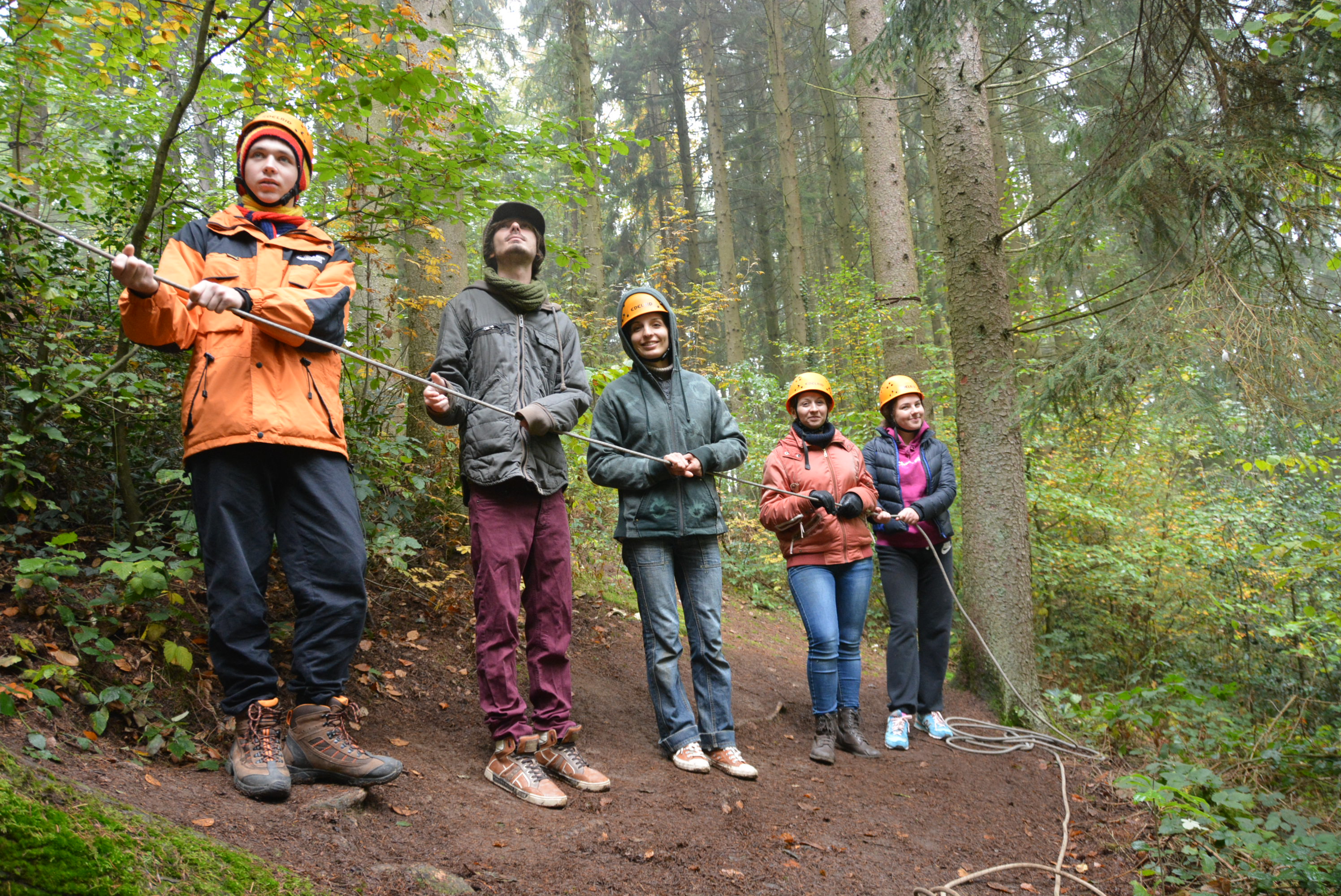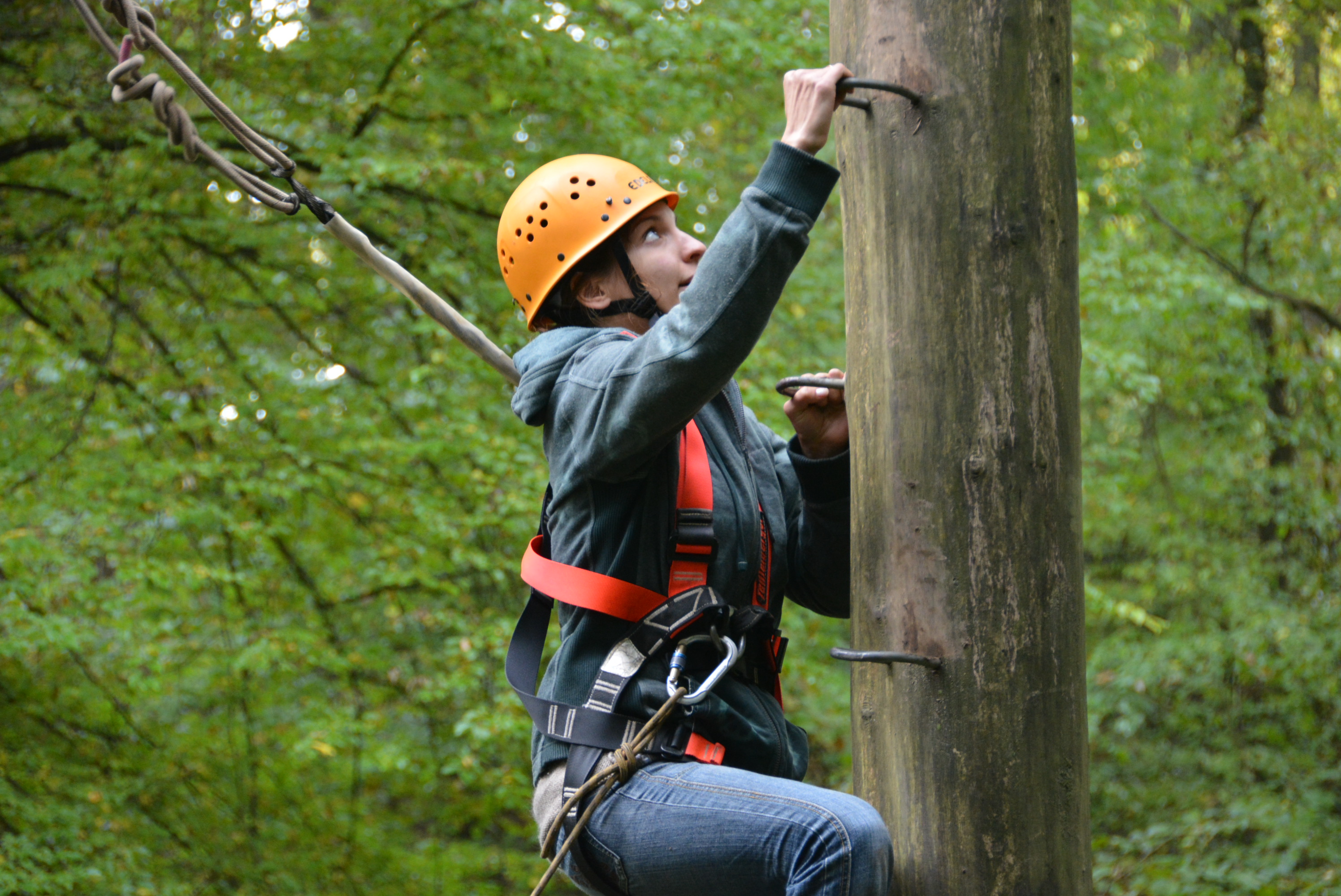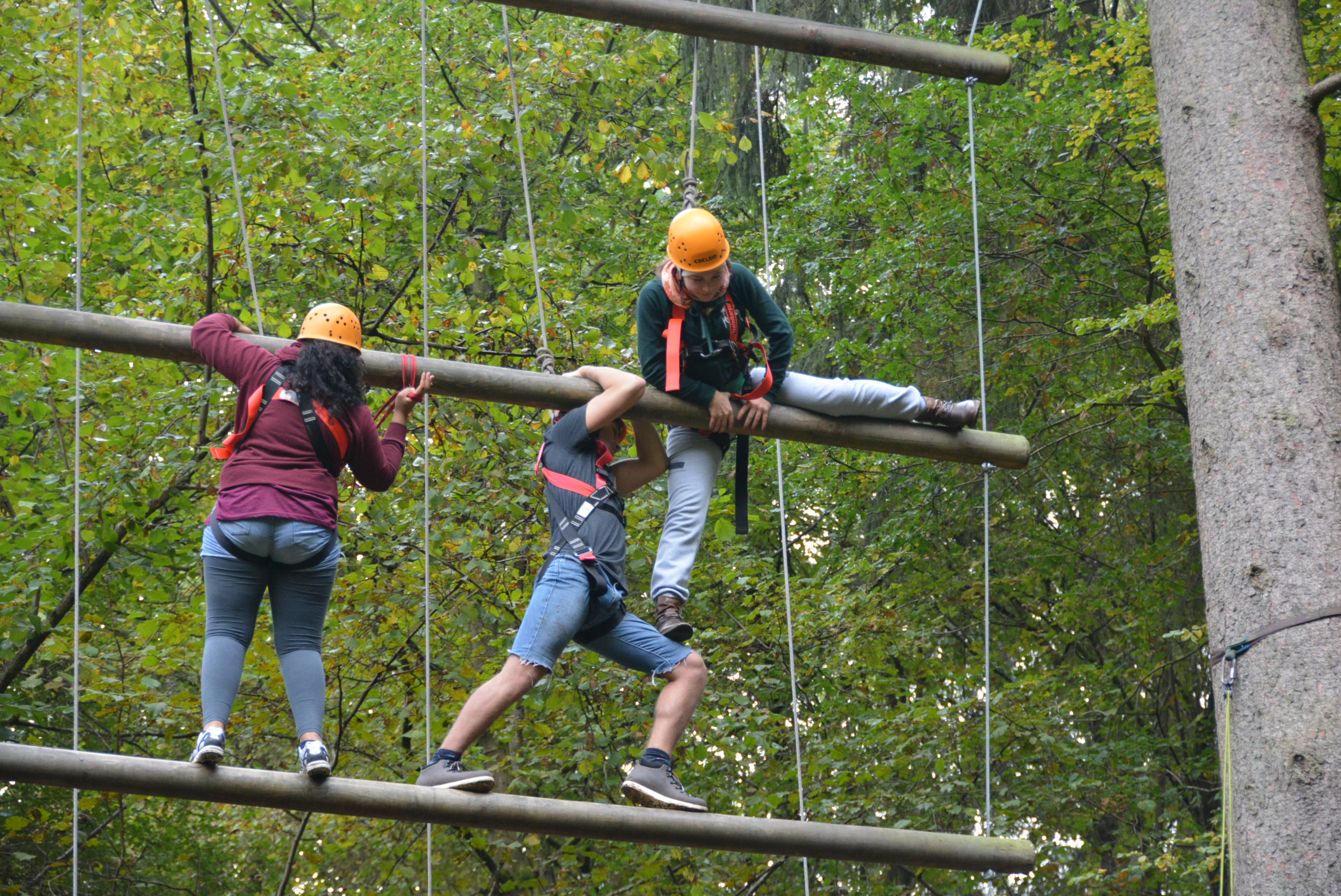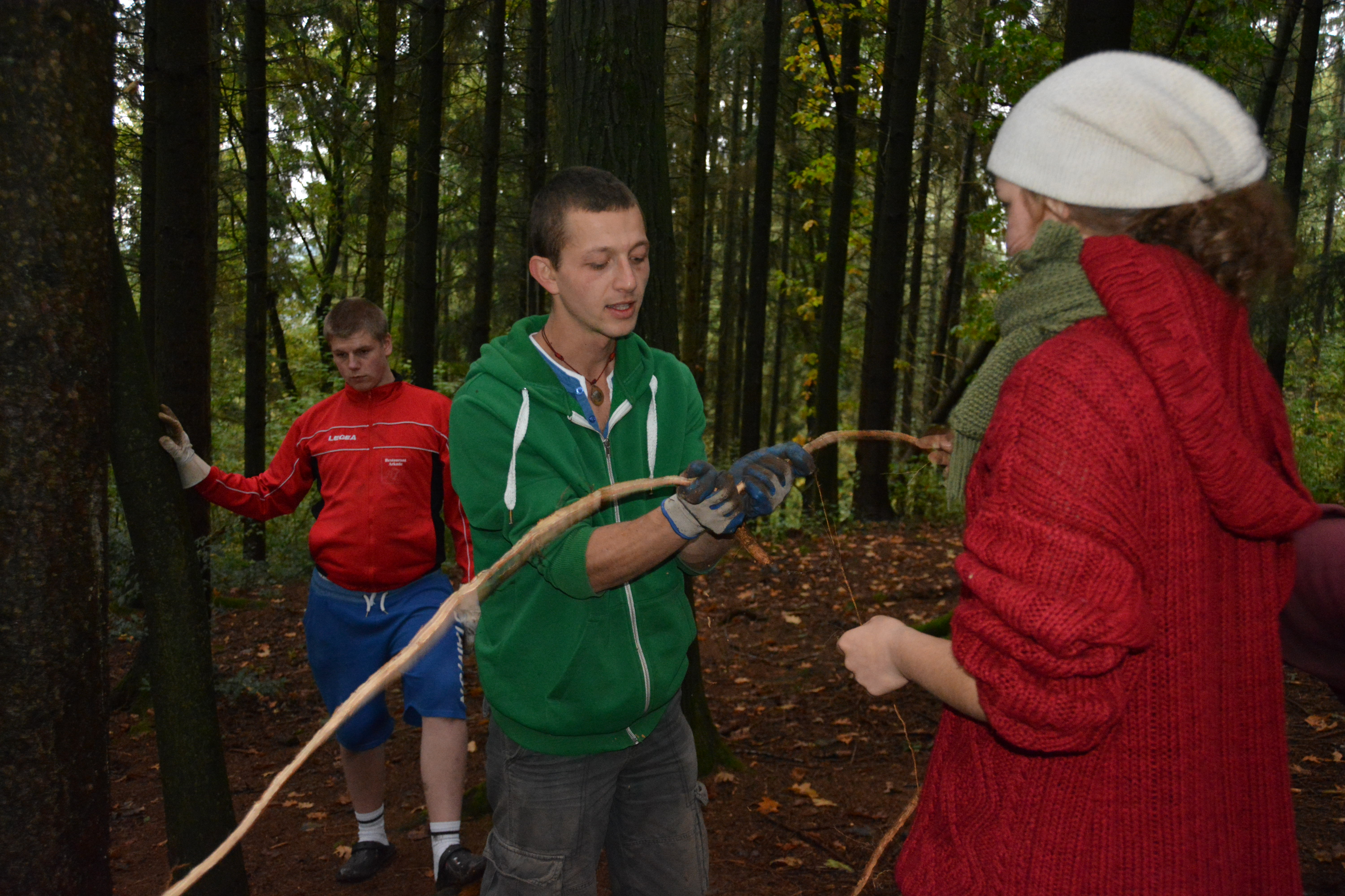 Eine kooperative Übung am Nachmittag erforderte Geduld und ein hohes Maß an Frusttoleranz: die Gruppe musste aus einem mit Seilen umspannten Bereich entkommen, ohne die Seile zu berühren – manchem Erlebnispädagogen auch bekannt als „Hühnerstall“.