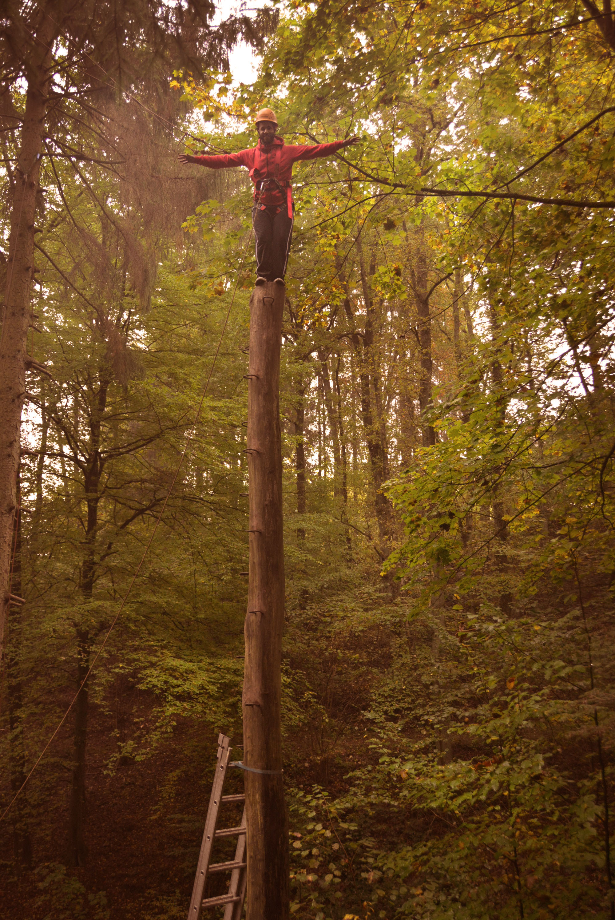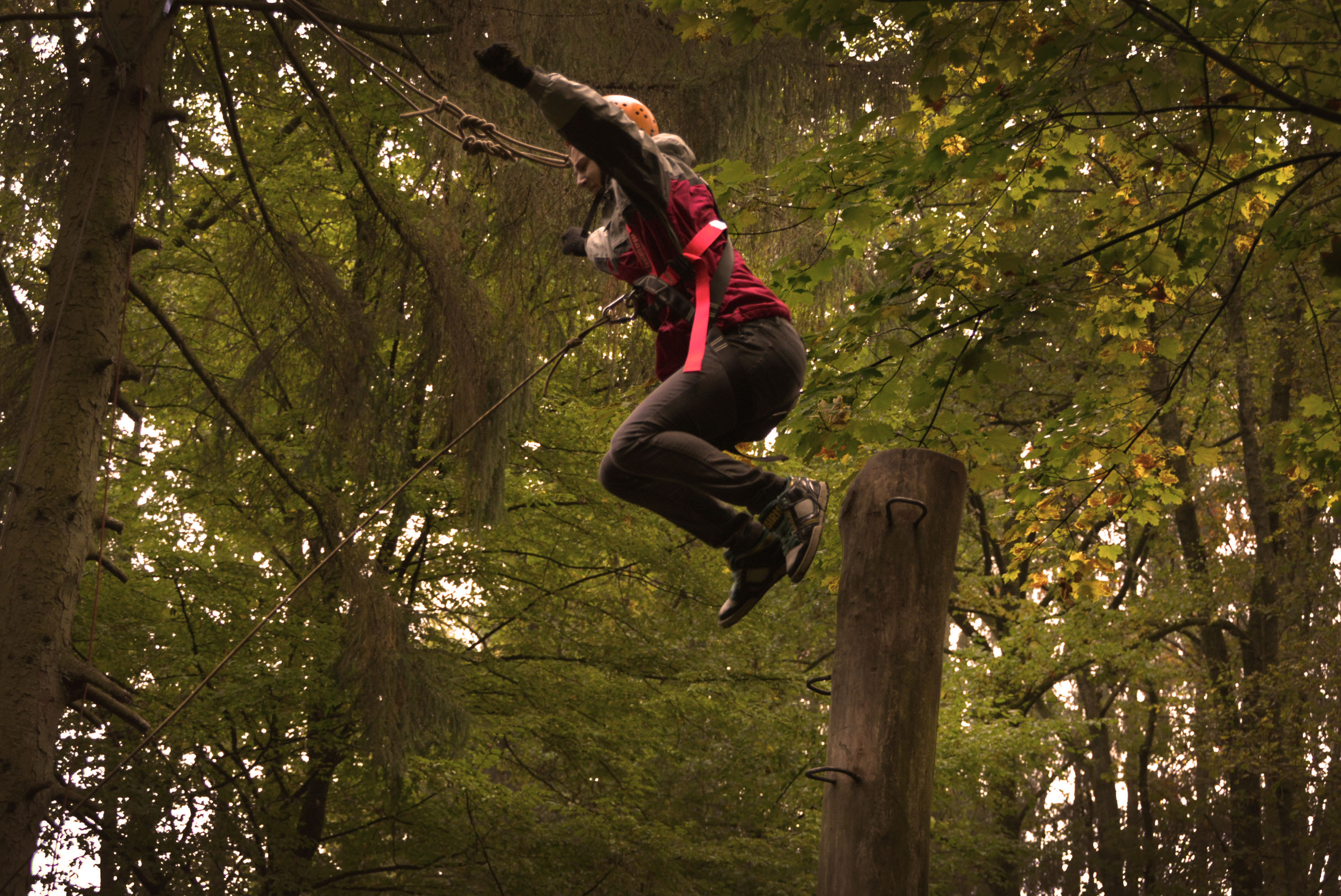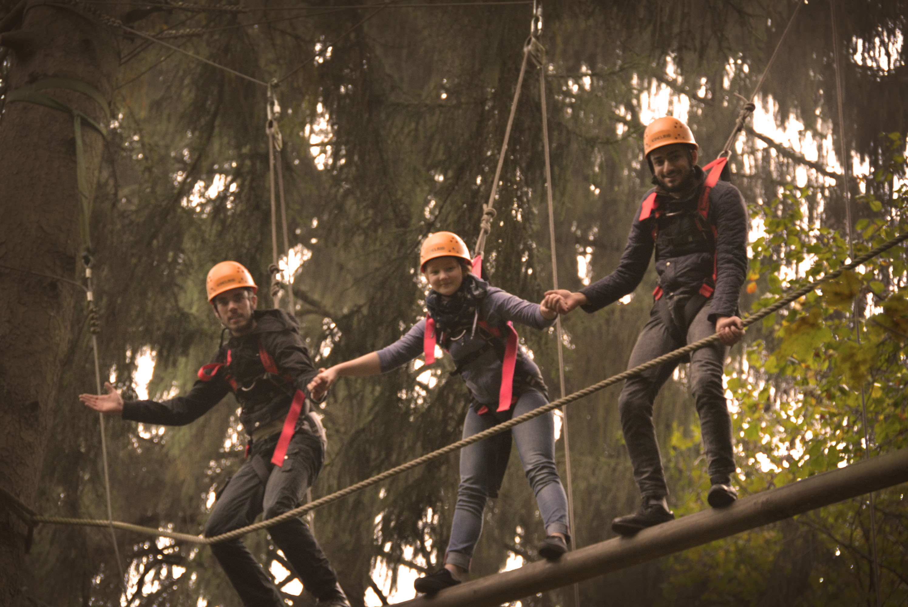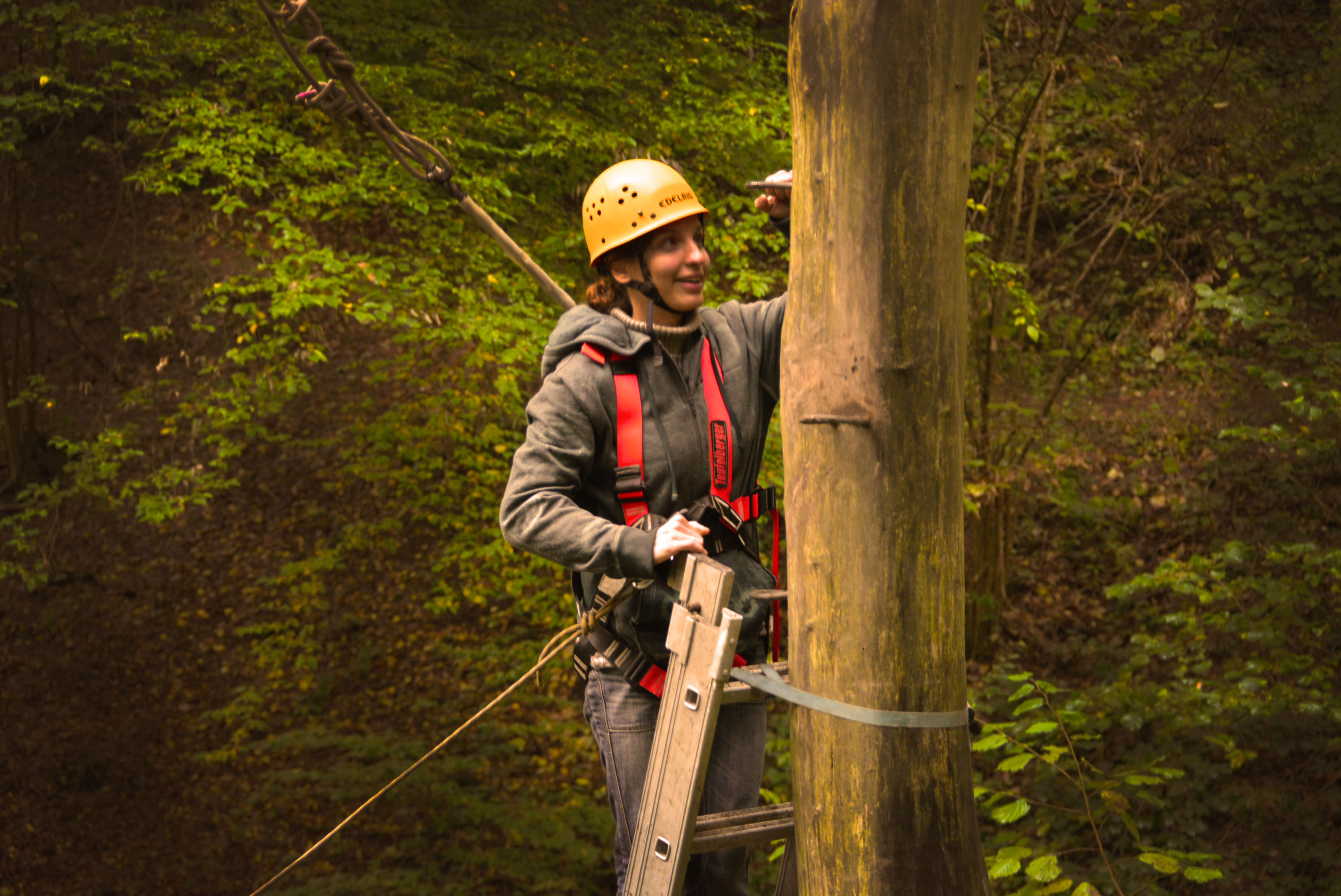 Eine kooperative Übung am Nachmittag erforderte Geduld und ein hohes Maß an Frusttoleranz: die Gruppe musste aus einem mit Seilen umspannten Bereich entkommen, ohne die Seile zu berühren – manchem Erlebnispädagogen auch bekannt als „Hühnerstall“.